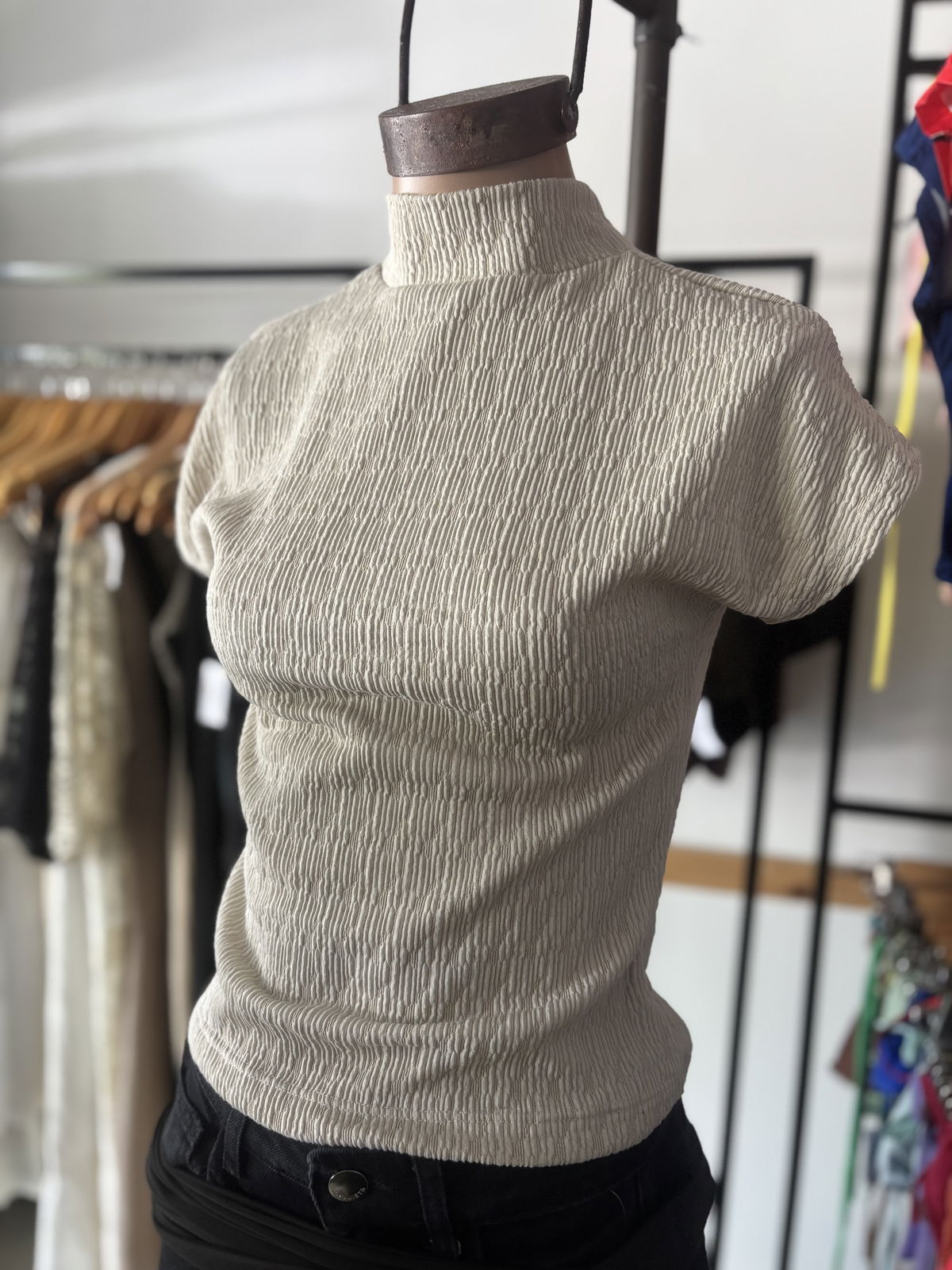 Remera media polera CALIDAD PREMIUM de tela texturada, suave y al cuerpo. De manga corta, cómoda y versátil para cualquier ocasión